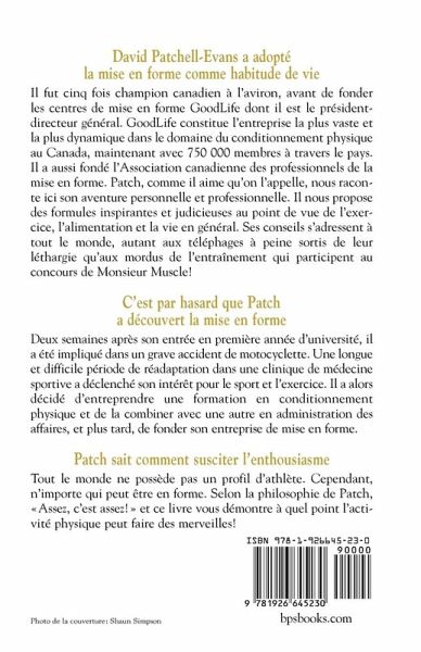 Offering fitness advice for everyone from couch potatoes just rising out of their lethargy to fitness buffs preparing for the Ironman competition, Patchell-Evans recounts his own personal and business story and gives balanced and inspiring tips on exercise, diet, and life in this French edition.
