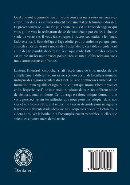 Quel que soit le genre de personne que vous êtes ou la voie que vous avez empruntée dans la vie, votre objectif fondamental est le bonheur durable. Le présent ouvrage, Une vie plus heureuse , est un trésor de sagesse qui vous guide vers la réalisation de ce dernier, étape par étape, à chaque stade de votre vie. Il vous fait voyager, à travers ses stades : l'enfance, l'adolescence, la fleur de l'âge et l'âge adulte, pour prendre fin par quelques conseils sincères visant à nous aider à atteindre le véritable entendement et un départ paisible de cette vie. À chaque stade, l'attention des lecteurs est attirée sur les nombreuses possibilités, et autant d'obstacles auxquels nous sommes tous confrontés.