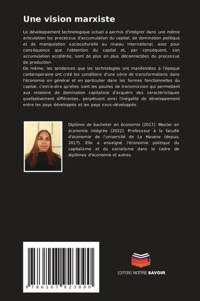 Le développement technologique actuel a permis d'intégrer dans une même articulation les processus d'accumulation du capital, de domination politique et de manipulation socioculturelle au niveau international, avec pour conséquence que l'obtention du capital et, par conséquent, son accumulation accélérée, sont de plus en plus déconnectées du processus de production.De même, les tendances que les technologies ont manifestées à l'époque contemporaine ont créé les conditions d'une série de transformations dans l'économie en général et en particulier dans les formes fonctionnelles du capital, c'est-à-dire qu'elles sont les poulies de transmission qui permettent aux relations de domination capitaliste d'acquérir des caractéristiques qualitativement différentes, perpétuant ainsi l'inégalité de développement entre les pays développés et les pays sous-développés.