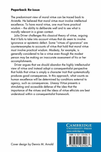 The predominant view of moral virtue can be traced back to Aristotle. He believed that moral virtue must involve intellectual excellence. To have moral virtue one must have practical wisdom - the ability to deliberate well and to see what is morally relevant in a given context. Julia Driver challenges this classical theory of virtue, arguing that it fails to take into account virtues which do seem to involve ignorance or epistemic defect. Some 'virtues of ignorance' are counterexamples to accounts of virtue which hold that moral virtue must involve practical wisdom. Modesty, for example, is…mehr