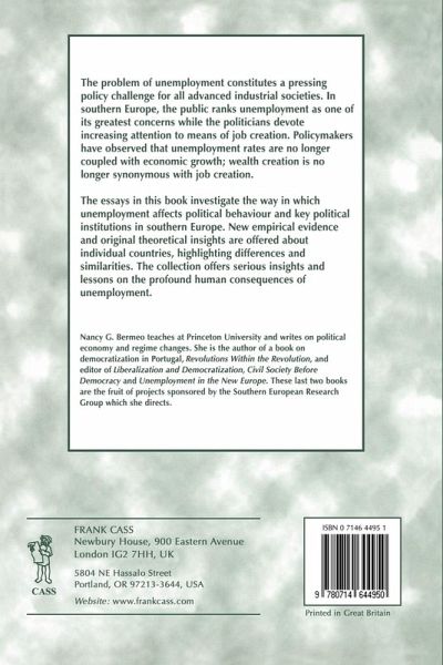 Unemployment is one of Southern Europe's most serious political problems. Though much has been written about unemployment's causes and cures, systematic attention to its consequences is lacking. This collection of original essays deals with the effects of unemployment on regimes, parties, immigrants, economies and families, highlighting the differences and the similarities among Southern European states and offering lessons about the profound human consequences of unemployment in general.