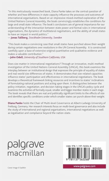 "In this meticulously researched book, Diana Panke takes on the central question of whether and how differences in state capacity influence the processes and outcomes of international organizations. Based on an impressive mixed-method exploration of the United Nations General Assembly, the book convincingly establishes the conditions for large and small state influence. The book's conclusions are of general importance for our understanding of the interaction between state power and formal rules in international organizations, the dynamics of multilateral negotiations, and the ability of small states to have an impact in world politics." - Jonas Tallberg, Stockholm University, Sweden