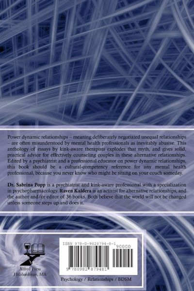 Power dynamic relationships - meaning deliberately negotiated unequal relationships - are often misunderstood by mental health professionals as inevitably abusive. This anthology of essays by kink-aware therapists explodes that myth, and gives solid, practical advice for effectively counseling couples in these alternative relationships. Edited by a psychiatrist and a professional educator on power dynamic relationships, this book should be a cultural-competency reference for any mental health professional, because you never know who might be sitting on your couch someday.