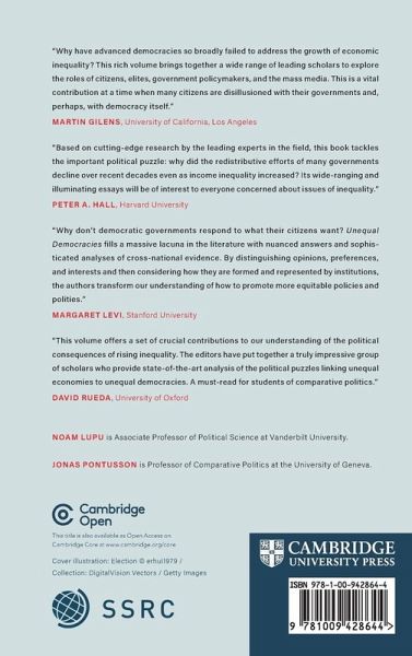 1. The political puzzle of rising inequality Noam Lupu and Jonas Pontusson; Part I. Government Responsiveness: 2. Unequal responsiveness and government partisanship in Northwest Europe Ruben Berge Mathisen, Wouter Schakel, Svenja Hense, Lea Elsässer, Mikael Persson and Jonas Pontusson; 3. Democracy, class interests, and redistribution: what do the data say? Mads Andreas Elkjær and Torben Iversen; 4. Measuring political inequality Larry M. Bartels; 5. Why so little sectionalism in the contemporary United States? The under-representation of place-based economic interests Jacob S. Hacker, Paul Pierson and Sam Zacher; Part II. Political Inequality and Representation: 6. On the mechanisms behind unequal representation in legislatures Michael Becher and Daniel Stegmueller; 7. How do the educated govern? Evidence from Spanish mayors Marta Curto-Grau and Aina Gallego; 8. Working-class officeholding in the OECD Nicholas Carnes and Noam Lupu; 9. Political participation and unequal representation: Addressing the endogeneity problem Ruben Berge Mathisen and Yvette Peters; Part III. Voters and Demand for Redistribution: 10. Fairness reasoning and demand for redistribution Charlotte Cavaillé; 11. The news media and the politics of inequality in advanced democracies J Scott Matthews, Timothy Hicks and Alan M. Jacobs; 12. Deflecting from racism: local talk radio conversations about the murder of George Floyd Katherine J. Cramer; 13. Class and social policy representation Macarena Ares and Silja Häusermann; Bibliography; Index.