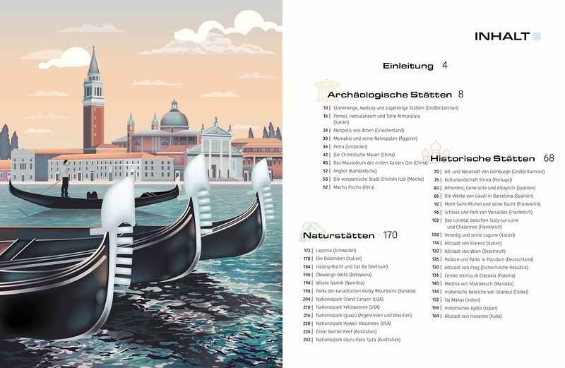 1.199 Stätten von kultureller, historischer und wissenschaftlicher Bedeutung für die Menschheit wurden mit der Verpflichtung, diese zu erhalten und zu würdigen, zu UNESCO-Welterbestätten ernannt.Dieses Buch verspricht atemberaubende Bilder, praktische Informationen und Reisevorschläge für 40 der großartigsten UNESCO-Welterbestätten der Erde. Infokästen liefern Insiderwissen, z. B. beste Reisezeit, günstige Verkehrsmittel für abgelegenere Stätten oder Tipps für unvergessliche Abenteuer. Mit seiner Vielfalt an Informationen eignet sich das Werk ideal als Erinnerungslektüre für vergangene Reisen oder als Reiseführer für bevorstehende Abenteuer.