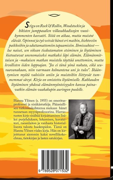 Stigu on Rock and Rollin, Woodstockin, liftausreissujen ja hikisten jumppasalien villasukkadiscojen vuosikymmenten kasvatti. Siitä on aikaa, mutta muistot elävät. Opinnot ja työ veivät hänet eri maihin, kiehtoviin paikkoihin ja odottamattomiin tapaamisiin. Ihmissuhteet - lue naiset, sen oikean tiedostamaton etsiminen ja löytäminen kietoutuvat unenomaiseksi matkaksi läpi elämän. Elämänmittaisen ja -makuisen matkan muistelu täyttää unettomien, mutta levollisten öiden luppoajan. Jos ei tänä yönä nukuta, eikä seuraavanakaan, niin varmaan kolmantena uni jo tulee. Ikääntymisen myötä valoisiin uniin…mehr