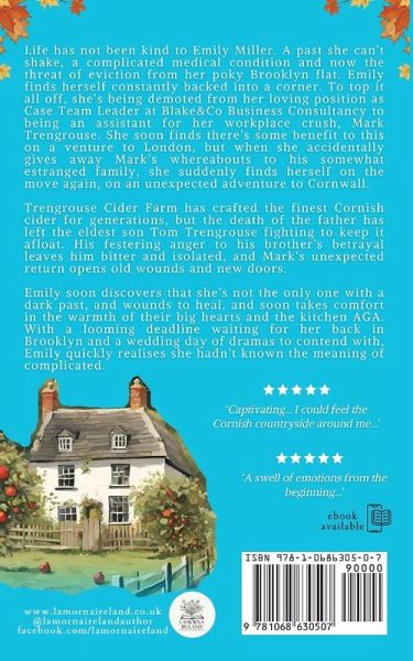 Life has not been kind to Emily Miller. A past she can't shake, a complicated medical condition and now the threat of eviction from her poky Brooklyn flat. Emily finds herself constantly backed into a corner. To top it all off, she's being demoted from her loving position as Case Team Leader at Blake&Co Business Consultancy to being an assistant for her workplace crush, Mark Trengrouse. She soon finds there's some benefit to this on a venture to London, but when she accidentally gives away Mark's whereabouts to his somewhat estranged family, she suddenly finds herself on the move again, on an unexpected adventure to Cornwall. Trengrouse Cider Farm has crafted the finest Cornish cider for generations, but the death of the father has left the eldest son Tom Trengrouse fighting to keep it afloat. His festering anger to his brother's betrayal leaves him bitter and isolated, and Mark's unexpected return opens old wounds and new doors. Emily soon discovers that she's not the only one with a dark past, and wounds to heal, and soon takes comfort in the warmth of their big hearts and the kitchen AGA. With a looming deadline waiting for her back in Brooklyn and a wedding day of dramas to contend with, Emily quickly realises she hadn't known the meaning of complicated.