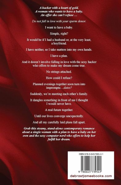 A hacker with a heart of gold. A woman who wants to have a baby. An offer she can't refuse ... Do not fall in love with your sperm donor. I want to have a baby.Simple, right?It would be if I had a husband or, at the very least, a boyfriend.I have neither, so I take matters into my own hands.I have a plan.And it doesn't involve falling in love with the sexy hacker who offers to make my dream come true.No strings attached.How could I refuse?Planned evenings together soon turn into impromptu...dates?Suddenly, we're meeting each other's family.It dangles something in front of me I thought I would never have.A real future together.Until our lives converge unexpectedly. And all my carefully laid plans fall apart. Grab this steamy, stand-alone contemporary romance about a single woman with a plan to have a baby on her own and the sexy computer nerd who offers to help her fulfill her dream.