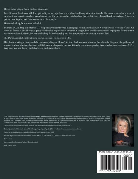 Her so-called gift put her in perilous situations… Janet Rodman barely controlled her psi ability as an empath to teach school and hang with a few friends. She never knew when a wave of unsuitable emotions from others would assault her. She had learned to build walls to live her life but evil could break them down. A job as a private tutor kept her safe from assault…or so she thought. He wasn't looking for a woman in his life… Former SEAL and top tier attorney J. T. Fitzpatrick wasn't interested in bringing a woman into his house. A bitter divorce took care of that. But when his friends at The Phoenix Agency called on his help to rescue a woman in danger, how could he say no? He's unprepared for the instant attraction to Janet Rodman, but he's not looking for a relationship and this is supposed to be a strictly business deal. The Darkman isn't about to let some woman interrupt his mission in life… His plan is working perfectly, and the bodies are piling up. He can't let Janet Rodman screw them up. But when she disappears, he pulls out all stops to find and eliminate her. And he'll kill anyone who gets in the way. With the chemistry exploding between them, can the former SEAL keep Janet safe and destroy the killer before he destroys them?