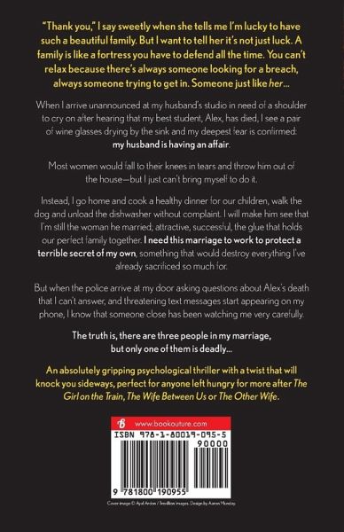 "Thank you," I say sweetly when she tells me I'm lucky to have such a beautiful family. But I want to tell her it's not just luck. A family is like a fortress you have to defend all the time. You can't relax because there's always someone looking for a breach, always someone trying to get in. Someone just like her... When I arrive unannounced at my husband's studio in need of a shoulder to cry on after hearing that my best student, Alex, has died, I see a pair of wineglasses drying by the sink and my deepest fear is confirmed: my husband is having an affair. Most women would fall to their knees in tears and throw him out of the house-but I just can't bring myself to do it. Instead, I go home and cook a healthy dinner for our children, walk the dog and unload the dishwasher without complaint. I will make him see that I'm still the woman he married; attractive, successful, the glue that holds our perfect family together. I need this marriage to work to protect a terrible secret of my own, something that would destroy everything I've already sacrificed so much for. But when the police arrive at my door asking questions about Alex's death that I can't answer, and threatening text messages start appearing on my phone, I know that someone close has been watching me very carefully. The truth is, there are three people in my marriage, but only one of them is deadly... An absolutely gripping psychological thriller with a twist that will knock you sideways, perfect for anyone left hungry for more after The Girl on the Train, The Wife Between Us or The Other Wife. Everyone is talking about Unfaithful: 'Wow just wow!! Nail-biting and suspenseful in the best way possible! What a ride!... I devoured this book in one sitting... I could feel my adrenaline surging through my veins the closer I got to the end. I was having palpitations with every twist!' Mrs Leifs, 5 stars