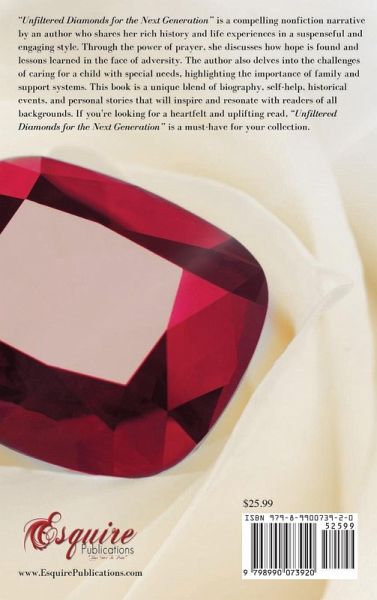 Unfiltered Diamonds for the Next Generation is a compelling nonfiction narrative by an author who shares her rich history and life experiences in a suspenseful and engaging style. Through the power of prayer, she discusses how hope is found and lessons learned in the face of adversity. The author also delves into the challenges of caring for a child with special needs, highlighting the importance of family and support systems. This book is a unique blend of biography, self-help, historical events, and personal stories that will inspire and resonate with readers of all backgrounds. If you're looking for a heartfelt and uplifting read, Unfiltered Diamonds for the Next Generation is a must-have for your collection.