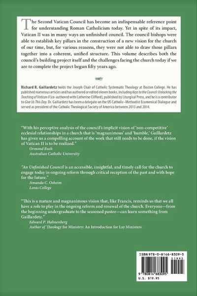 The Second Vatican Council has become an indispensable reference point for understanding Roman Catholicism today. Yet in spite of its impact, Vatican II was in many ways an unfinished council. The council bishops were able to establish key pillars in the construction of a new vision for the church of our time, but, for various reasons, they were not able to draw those pillars together into a coherent unified structure. This volume describes both the council s building project itself and the challenges facing the church today if we are to complete the project begun fifty years ago."