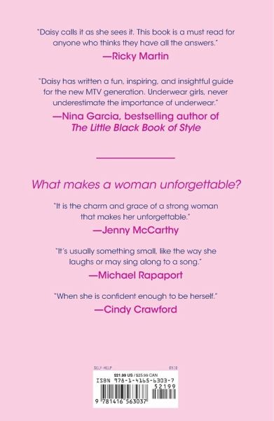 In this stylish and uplifting guide to living, now in paperback, Daisy Fuentes reveals how to tap into your unique and unforgettable “star quality!” Everybody wants to be noticed and admired, they want to be unforgettable. The concept of what makes a person more desirable and appealing has always fascinated and intrigued TV star, model, and fashion designer Daisy Fuentes. Early on in her career, Daisy became intrigued by the “it” factor that made certain people more attractive, billable, and bankable than others. Unforgettable You teaches you how to create beauty, style, health, and irresistibility by being honest with yourself and getting to know the real you. With Daisy’s personal stories, observations, and the advice that she has learned along the way from celebrities, experts, and fabulous friends, Unforgettable You offers an encouraging, “friend to friend” field guide.