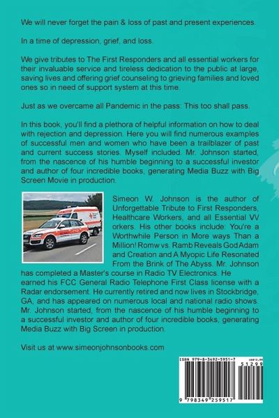 Unforgettable. We will never forget the pain & loss of past and present experiences. In a time of depression, grief, and loss. We give tributes to The First Responders and all essential workers for their invaluable service and tireless dedication to the public at large, saving lives and offering grief counseling to grieving families and loved ones so in need of a support system at this time. Just as we overcame all Pandemic in the pass: This too shall pass. In this book, you'll find a plethora of helpful information on how to deal with rejection and depression. Here you will find numerous examples of successful men and women who have been a trailblazer of past and current success stories. Myself included. Mr. Johnson started, from the nascence of his humble beginning to a successful investor and author of four incredible books, generating Media Buzz with Big Screen Movie in production.