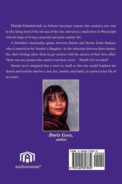 Dorian Greenwood, an African-American woman who wanted a new start in life, being tired of the rat race of the city, she moved to a small town in Mississippi, with the hope of living a peaceful and quiet country life. A forbidden relationship ignites between Dorian and young Doctor Grant Hudson. As the attraction between them intensifies, their feelings allow them to get careless with the secrecy of their love affair. There was one person that would reveal their secret and since she never got the chance, would it last, or would it end? Dorian never imagined that a town as small as this one would heighten her desires and lead her into love, lust, lies, murder, many adventures, and finally, to a point in her life of no return.