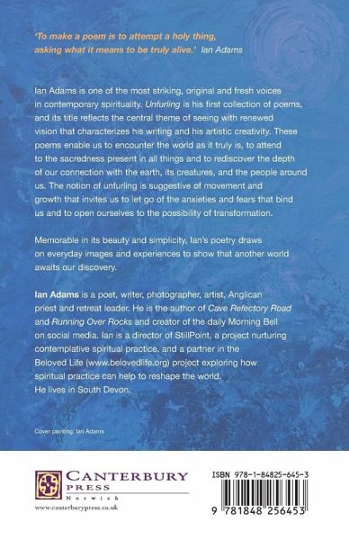 Ian Adams is one of the most striking, original and fresh voices in contemporary Christian spirituality. Poetry features large in his work and is an integral part of the two bestselling books he has written. Poetry reading features in his work as a speaker, retreat leader and spiritual director to individuals and to an online community. He is frequently asked where his poems can be obtained. His poems are short, arresting, richly textured and deceptively simple. The title of this collection, Unfurling, is indicative of what Ian's poetry is about: the possibilities of seeing the world as it truly is, of recovering our sense of who we are, and of the revelation of the divine. It also has a sense of movement, reminding us that we too can open ourselves to the possibility of transformation and growth.