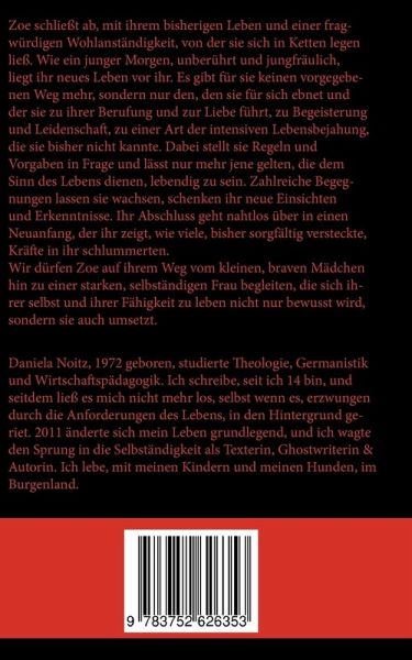 Zoe schließt ab, mit ihrem bisherigen Leben und einer fragwürdigen Wohlanständigkeit, von der sie sich in Ketten legen ließ. Wie ein junger Morgen, unberührt und jungfräulich, liegt ihr neues Leben vor ihr. Es gibt für sie keinen vorgegebenen Weg mehr, sondern nur den, den sie für sich ebnet und der sie zu ihrer Berufung und zur Liebe führt, zu Begeisterung und Leidenschaft, zu einer Art der intensiven Lebensbejahung, die sie bisher nicht kannte. Dabei stellt sie Regeln und Vorgaben in Frage und lässt nur mehr jene gelten, die dem Sinn des Lebens dienen, lebendig zu sein. Zahlreiche Begegnungen lassen sie wachsen, schenken ihr neue Einsichten und Erkenntnisse. Ihr Abschluss geht nahtlos über in einen Neuanfang, der ihr zeigt, wie viele, bisher sorgfältig versteckte, Kräfte in ihr schlummerten. Wir dürfen Zoe auf ihrem Weg vom kleinen, braven Mädchen hin zu einer starken, selbständigen Frau begleiten, die sich ihrer selbst und ihrer Fähigkeit zu leben nicht nur bewusst wird, sondern sie auch umsetzt.