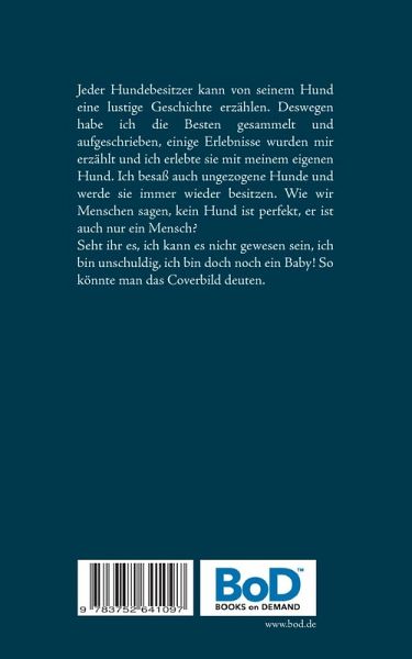 Jeder Hundebesitzer kann von seinem Hund eine lustige Geschichte erzählen. Deswegen habe ich die Besten gesammelt und aufgeschrieben, einige Erlebnisse wurden mir erzählt und ich erlebte sie mit meinem eigenen Hund. Ich besaß auch ungezogene Hunde und werde sie immer wieder besitzen. Wie wir Menschen sagen, kein Hund ist perfekt, er ist auch nur ein Mensch?Seht ihr es, ich kann es nicht gewesen sein, ich bin unschuldig, ich bin doch noch ein Baby! So könnte man das Coverbild deuten.