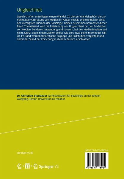 Gesellschaften unterliegen einem Wandel. Zu diesem Wandel gehört die zunehmende Verbreitung von Medien im Alltag. Soziale Ungleichheit ist eines der wichtigsten Themen der Soziologie. Beides zusammen betrachtet dieser Band: Thematisiert wird die Entstehung von Ungleichheit bei der Produktion von Medien, bei deren Anwendung und Konsum, bei den Medieninhalten und nicht zuletzt auch in den Medien selbst, wie dies etwa beim Internet der Fall ist. Im Band werden theoretische Zugänge und Fallstudien vorgestellt und damit der Stand der Forschung in diesem Bereich erschlossen.