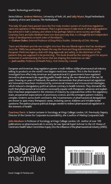 "Davis and Abraham provide new insights into how the neo-liberal regime that has developed since the 1980s has profoundly biased the way the Food and Drug Administration and the European Medicines Agency deal with drug approvals and safety, to the detriment of the patients they are supposed to be protecting. The drug companies, not the people who need effective and safe medicines, are now the primary clients of drug regulators. However, Davis and Abraham do not stop with just criticizing the current situation; they offer concrete steps that can be taken to restore drug regulation to what should be its true function. This book should be the starting point for anyone interested in understanding the forces that are shaping the medicines we take.- Joel Lexchin, Professor of Health Policy, York University, Canada