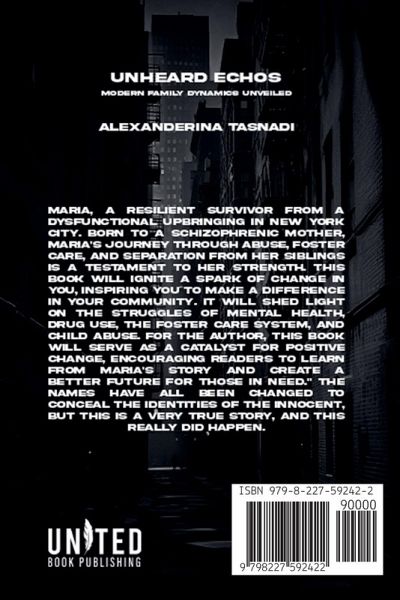 Maria, a resilient survivor from a dysfunctional upbringing in New York City. Born to a schizophrenic mother, Maria's journey through abuse, foster care, and separation from her siblings is a testament to her strength. This book will ignite a spark of change in you, inspiring you to make a difference in your community. It will shed light on the struggles of mental health, drug use, the foster care system, and child abuse. For the author, this book will serve as a catalyst for positive change, encouraging readers to learn from Maria's story and create a better future for those in need." The names have all been changed to conceal the identities of the innocent but this is a very true story and this really did happen.