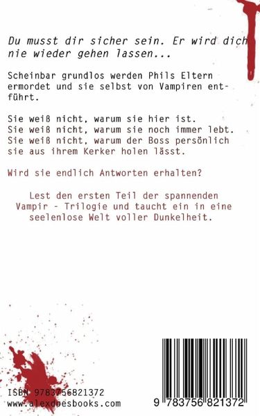 Du musst dir sicher sein. Er wird dichnie wieder gehen lassen...Scheinbar grundlos werden Phils Elternermordet und sie selbst von Vampiren ent-führt.Sie weiß nicht, warum sie hier ist.Sie weiß nicht, warum sie noch immer lebt.Sie weiß nicht, warum der Boss persönlichsie aus ihrem Kerker holen lässt.Wird sie endlich Antworten erhalten?Lest den ersten Teil der spannendenVampir - Trilogie und taucht ein in eineseelenlose Welt voller Dunkelheit.