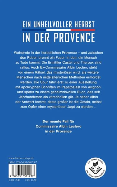Weinernte in der herbstlichen Provence - und zwischen den Reben brennt ein Feuer, in dem ein Mensch zu Tode kommt. Die Ermittler Castel und Theroux sind ratlos. Auch Ex-Commissaire Albin Leclerc steht vor einem Rätsel, das mysteriöser wird, als weitere Menschen nach mittelalterlichen Methoden ermordet werden. Die Spur führt erst zu einer Ausstellung mit apokryphen Schriften im Papstpalast von Avignon, und später zu einem geheimnisvollen Buch, das seit Jahrhunderten als verschollen gilt. Je näher Albin der Antwort kommt, desto größer ist die Gefahr, selbst zum Opfer einer mysteriösen Jagd zu werden ...