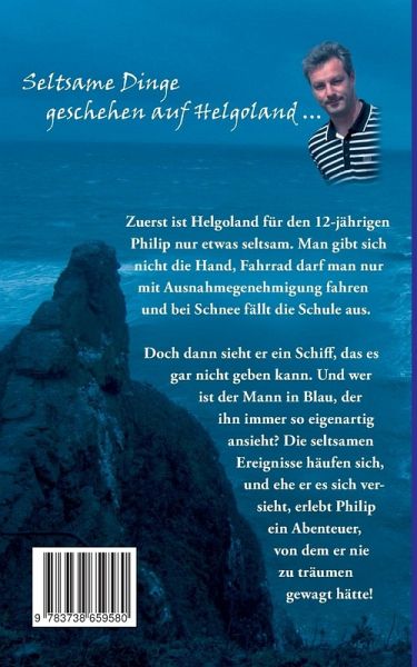 Zuerst ist Helgoland für den 12-jährigen Philip nur etwas seltsam. Man gibt sich nicht die Hand, Fahrrad darf man nur mit Ausnahmegenehmigung fahren und bei Schnee fällt die Schule aus. Doch dann sieht er ein Schiff, das es gar nicht geben kann. Und wer ist der Mann in Blau, der ihn immer so eigenartig ansieht? Die seltsamen Ereignisse häufen sich, und ehe er es sich versieht, erlebt Philip ein Abenteuer, von dem er nie zu träumen gewagt hätte!