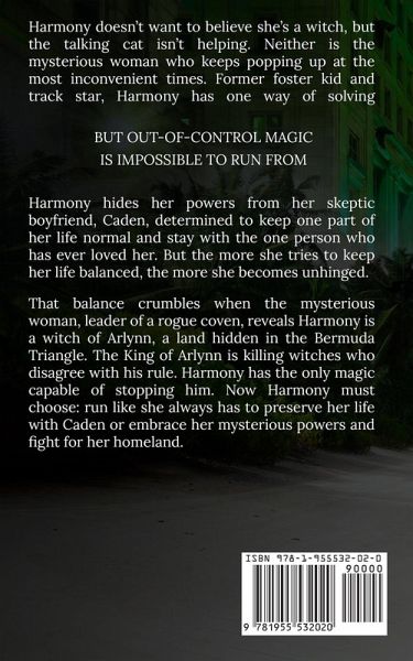Harmony doesn't want to believe she's a witch, but the talking cat isn't helping. Neither is the mysterious woman who keeps popping up at the most inconvenient times. Former foster kid and track star, Harmony has one way of solving problems-run. But out-of-control magic is impossible to run from. Harmony hides her powers from her skeptic boyfriend, Caden, determined to keep one part of her life normal and stay with the one person who has ever loved her. But the more she tries to keep her life balanced, the more she becomes unhinged. That balance crumbles when the mysterious woman, leader of a rogue coven, reveals Harmony is a witch of Arlynn, a land hidden in the Bermuda Triangle. The King of Arlynn is killing witches who disagree with his rule. Harmony has the only magic capable of stopping him. Now Harmony must choose: run like she always has to preserve her life with Caden or embrace her mysterious powers and fight for her homeland. This ends on a cliffhanger.