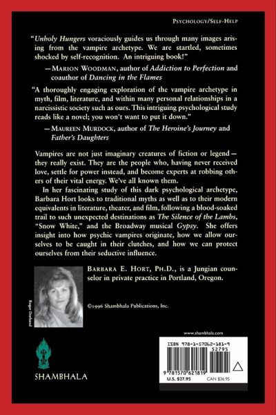 Vampires are not just imaginary creatures of fiction or legend-they really exist. They are the people who, having never received love, settle for power instead, and become experts at robbing others of their vital energy. We've all known them. In her fascinating study of this dark psychological archetype, Barbara Hort looks to traditional myths as well as to their modern equivalents in literature, theater, and film, following a blood-soaked trail to such unexpected destinations as The Silence of the Lambs, "Snow White," and the Broadway musical Gypsy. She offers insight into how psychic vampires originate, how we allow ourselves to be caught in their clutches, and how we can protect ourselves from their seductive influence.