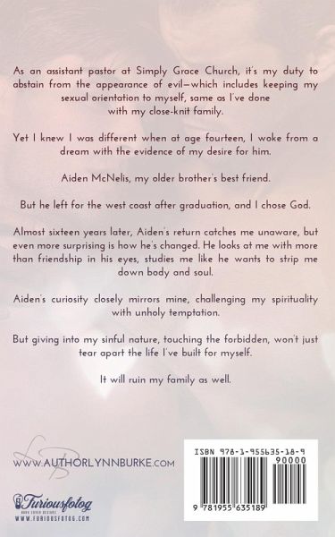 As an assistant pastor at Simply Grace Church, it's my duty to abstain from the appearance of evil-which includes keeping my sexual orientation to myself, same as I've done with my close-knit family. Yet I knew I was different when at age fourteen, I woke from a dream with the evidence of my desire for him. Aiden McNelis, my older brother's best friend. But he left for the west coast after graduation, and I chose God. Almost sixteen years later, Aiden's return catches me unaware, but even more surprising is how he's changed. He looks at me with more than friendship in his eyes, studies me like he wants to strip me down body and soul. Aiden's curiosity closely mirrors mine, challenging my spirituality with unholy temptation. But giving in to my sinful nature, touching the forbidden, won't just tear apart the life I've built for myself. It will ruin my family as well.