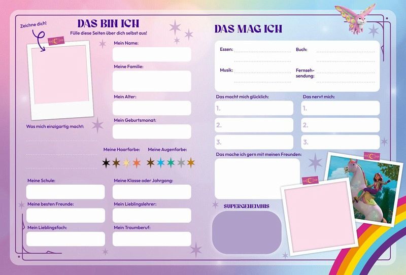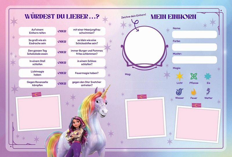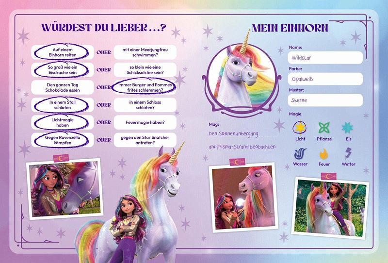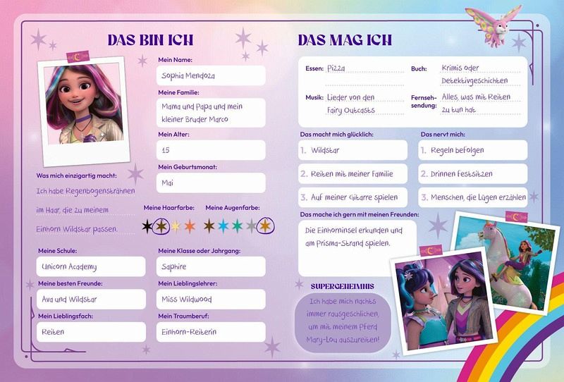 Ein Buch für alle deine Freundinnen und Freunde! Mit ganz viel Platz zum Eintragen, dazu wunderschöne Bilder von allen Einhornreiterinnen und Einhornreitern der Unicorn Academy.