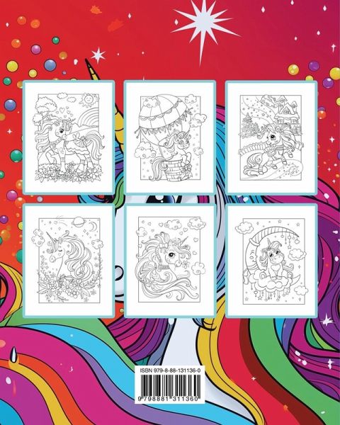In un regno di arcobaleni scintillanti e nuvole soffici, scopri un libro da colorare magico con 56 pagine avvincenti di incantevoli avventure di unicorni. Ogni pagina presenta affascinanti personaggi di unicorni, pronti a prendere vita con colori vibranti. Ma questo non è un comune libro da colorare! Nascosta in ogni illustrazione c'è una rima capricciosa, che svela la personalità unica dell'unicorno e le sue dispettose avventure. Immagina unicorni birichini che fanno scherzi, ballano sotto la luce della luna e volano tra nuvole di zucchero filato. Con ogni colpo di matita colorata, i bambini diventano narratori, sbloccando la magia dentro le loro immaginazioni. Imbarcati in un viaggio pieno di risate, colori e immaginazione senza limiti. Prendi i tuoi pastelli e tuffati nel mondo degli unicorni, dove sogni e risate si scontrano su ogni pagina. Il nostro straordinario libro da colorare di unicorni ti permette di creare la storia, e la magia è limitata solo dalle tue fantasie più selvagge. Lascia che gli unicorni ti guidino in un'avventura che riempirà il tuo cuore di gioia e la tua mente di meraviglia. La magia ti attende, apri il libro e lascia che la tua immaginazione voli alto!