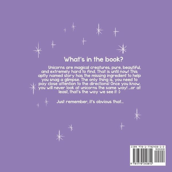 Unicorns are magical creatures, pure, beautiful, and extremely hard to find. That is until now! This aptly named story has the missing ingredient to help you snag a glimpse. The only thing is, you need to pay close attention to the directions! Once you know, you will never look at unicorns the same way! ...or at least, that's the way we see it :) Just remember, it's obvious...Unicorns Really Love Cupcakes!