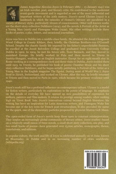 James Augustine Aloysius Joyce (em Irlandês: Séamus Seoighe) nasceu a 2 de fevereiro de 1882 em Dublin (Irlanda), e veio a falecer em Zurique (Suíça) a 13 de janeiro de 1941 aos 58 anos. Tendo entrado em coma após uma cirurgia a uma úlcera péptica duodenal perfurada, viria a falecer dois dias depois enquanto aguardava a visita da sua esposa Nora Barnacle e do seu filho Giorgio Joyce que se encontravam a caminho. O seu corpo foi sepultado no Cemitério Fluntern em Zurique (Suíça).Escritor de excelência da vanguarda modernista, James Joyce distinguiu-se na literatura como poeta, contista, novelista e romancista, sendo considerado um dos mais importantes autores do século XX e como tal um dos maiores influenciadores da literatura do mesmo século.James Joyce tinha problemas de visão que levaram a múltiplas cirurgias oftalmológicas ao longo da sua vida, motivo pelo qual podemos vê-lo usar pala em diversas ocasiões em que foi fotografado. O seu percurso de vida inclui a frequência universitária (1898) em Dublin na University College, onde estudou Inglês, Francês e Italiano, e época na qual frequentou diversos círculos literários e teatrais. Dois anos após ter inciado a universidade Joyce publicou o seu primeiro trabalho na The Fortnightly Review (1900), uma recensão da última obra dramática de Henrik Ibsen Når vi døde vågner (Quando Nós Os Mortos Acordamos). A crítica literária viria a ser também uma das suas paixões. Em 1902 e após se ter licenciado na Royal University of Dublin, Joyce tentou seguir medicina na Catholic University Medical School, mas não tendo conseguido uma posição de docente para financiar os seus estudos, deslocou-se para Paris a fim de prosseguir estudos na École de Médecine, mas viria a desistir, no entanto permancendo em Paris.A sua vida tomou um rumo quando conheceu Nora Barnacle em 1904, mulher que viria a ser sua esposa. Joyce tentou então a música, sendo m tenor talentoso inscreveu-se num concurso de música irlandesa, a fim de melhor as suas capacidades, penhorou alguns dos seus livros para ter aulas de canto. O concurso correu-lhe bem nas duas primeiras atuações, mas na terceira teria de cantar a prima vista, desafio musical em que o cantor não ensaia e interpreta a música que lhe colocarem no momento de atuação, ele recusou. Ainda assim ficou em terceiro lugar. De seguida conseguiu dar os primeiros passos da sua reputação literária ao tentar publicar A Portrait of the Artist, mas foi recusado pelo jornal Dana. Em meados desse ano conseguiu por fim publicar três contos que viriam a integrar The Dubliners no Irish Homestead. No fim de 1904 Joyce impôs-se um auto-exílio e partiu para Zurique na expetativa de se tornar docente numa vaga que lhe havia sido prometida, mas ao chegar lá não existia vaga alguma. O diretor da escola de Trieste enviou-o então para Pola onde viria a en-sinar inglês numa base naval austro-húngara. Já em 1905 Joyce conseguiu colocação na Escola Berlitz em Trieste onde por fim lhe foi possível juntar dinheiro para publicar o seu poema satírico Holy Offce do qual conseguiu fazer imprimir cópias e distribuí-las.Mais tarde, cansado de Trieste e de não conseguir publicar The Dubliners, aventurou-se para Roma para trabalhar num banco que lhe pagava o dobro do salário. Joyce aproveitou para trabalhar e rever as suas obras, mas a estadia não durou muito e voltou para Trieste.Em 1914, por fim, conseguiu a publicação de The Dubliners por via da Maunsel and Company de George Roberts, após oito anos de espera.Posteriomente - e deixando mais biografia para futuras publicações - a sua carreira literária compôs-se tendo publicado a sua magnus opera Ulysses, livros de poesia e peças de teatro, entre outras obras.Nos anos seguintes James Joyce não voltou a Dublin, e fez o resto da sua vida entre Londres, Paris, Trieste e Zurique, onde viria por fim a falecer a 13 de janeiro de 1941.