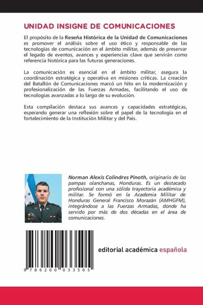 El propósito de la Reseña Histórica de la Unidad de Comunicaciones es promover el análisis sobre el uso ético y responsable de las tecnologías de comunicación en el ámbito militar, además de preservar el legado de eventos, avances y experiencias clave que servirán como referencia histórica para las futuras generaciones.La comunicación es esencial en el ámbito militar, asegura la coordinación estratégica y operativa en misiones críticas. La creación del Batallón de Comunicaciones marcó un hito en la modernización y profesionalización de las Fuerzas Armadas, facilitando el uso de tecnologías avanzadas a lo largo de su evolución.Esta compilación destaca sus avances y capacidades estratégicas, esperando generar una reflexión sobre el papel de la tecnología en el fortalecimiento de la Institución Militar y del País.
