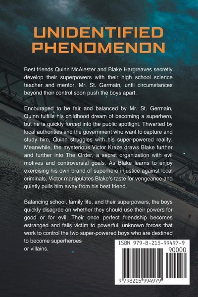 The manhunt is on, but no one knows who-or what-to look for. Impossibly heroic superhuman saves, wanted criminals vanishing into thin air, and thugs washing up with unexplainable third-degree burns can mean only one thing: someone has taken the law into their own hands. But who? And why? With the Department of Homeland Security breathing down the necks of city officials, Quinn and Blake must hide their superpowers from everyone, even their families. Time is running out. How long can they outrun the growing pile of damning evidence against them? UNIDENTIFIED PHENOMENON is the second book of The…mehr