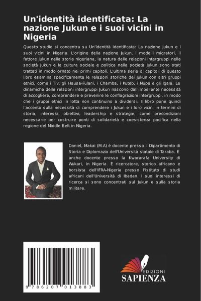 Questo studio si concentra su Un'identità identificata: La nazione Jukun e i suoi vicini in Nigeria. L'origine della nazione Jukun, i modelli migratori, il fattore Jukun nella storia nigeriana, la natura delle relazioni intergruppi nella società Jukun e la cultura sociale e politica nella società Jukun sono stati trattati in modo ornato nei primi capitoli. L'ultima serie di capitoli di questo libro esamina specificamente le relazioni storiche dei Jukun con altri gruppi etnici, come i Tiv, gli Hausa-Fulani, i Chamba, i Kuteb, i Nupe e gli Igala. Le dinamiche delle relazioni intergruppi Jukun nascono dall'impellente necessità di accogliere, comprendere e prevenire le conflagrazioni intergruppi, in modo che i gruppi etnici in lotta non continuino a dividersi. Il libro pone quindi l'accento sulla necessità di comprendere i Jukun e i loro vicini in termini di storia, interessi, obiettivi, leadership e strategie, come precondizioni necessarie per costruire ponti di solidarietà e coesistenza pacifica nella regione del Middle Belt in Nigeria.