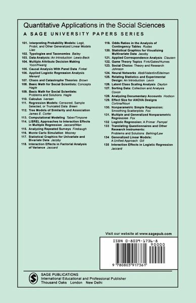 Provides an introduction to the fundamentals of scaling theory and construction, focusing on a variety of unidimensional scaling models. The authors present an overview and comparative analysis of such techniques as Thurstone scaling, Likert scaling, Guttman scaling, and unfolding theory, with emphasis on their varying conceptions of dimensionality. 'The aim of this series is to make the assumptions and practices of quantitative analysis more readily accessible to students and research workers with a limited background in statistics or mathematics...earlier works in the series certainly achieve this aim, and are, on the whole, lucidly written and of a generally high standard. The current two volumes maintain this standard.' -- Personality and Individual Differences, Vol 3 1982