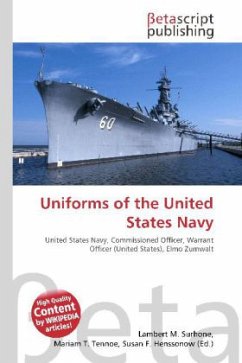 Please note that the content of this book primarily consists of articles available from Wikipedia or other free sources online. Uniforms of the United States Navy are a distinction of the service and still follow many traditional patterns, for example, the changes in uniforms since World War II have been primarily in materials. This article examines dress uniforms, daily service uniforms, working uniforms, special situations, and the history of Navy uniforms. For simplicity in this article, "Officers" refers to both commissioned officers and warrant officers.