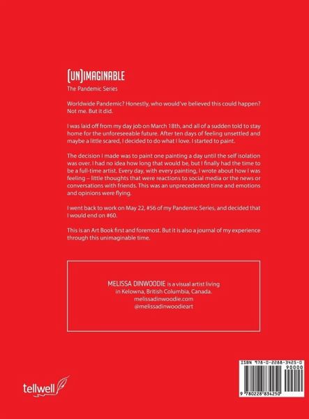 (UN)IMAGINABLE The Pandemic Series Worldwide Pandemic? Honestly, who would've believed this could happen? Not me. But it did. I was laid off from my day job on March 18th, and all of a sudden told to stay home for the unforeseeable future. After ten days of feeling unsettled and maybe a little scared, I decided to do what I love. I started to paint. The decision I made was to paint one painting a day until the self isolation was over. I had no idea how long that would be, but I finally had the time to be a full-time artist. Every day, with every painting, I wrote about how I was feeling - little thoughts that were reactions to social media or the news or conversations with friends. This was an unprecedented time and emotions and opinions were flying. I went back to work on May 22, #56 of my Pandemic Series, and decided that I would end on #60. This is an Art Book first and foremost. But it is also a journal of my experience through a crazy time.