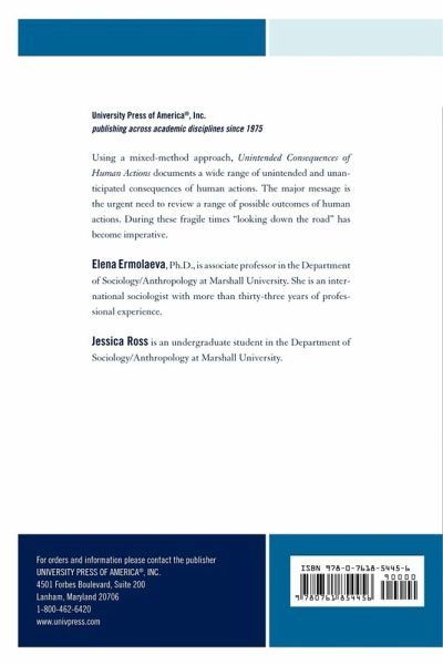 Using a mixed-method approach, Unintended Consequences of Human Actions documents a wide range of unintended and unanticipated consequences of human actions. The major message is the urgent need to review a range of possible outcomes of human actions. During these fragile times "looking down the road" has become imperative.