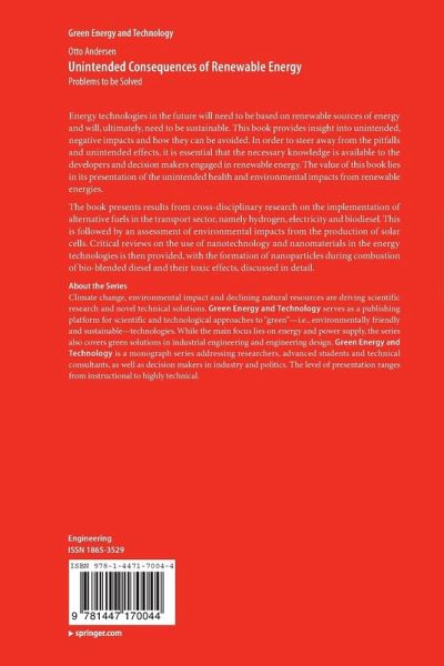 Energy technologies in the future will need to be based on renewable sources of energy and will, ultimately, need to be sustainable. This book provides insight into unintended, negative impacts and how they can be avoided. In order to steer away from the pitfalls and unintended effects, it is essential that the necessary knowledge is available to the developers and decision makers engaged in renewable energy. The value of this book lies in its presentation of the unintended health and environmental impacts from renewable energies.