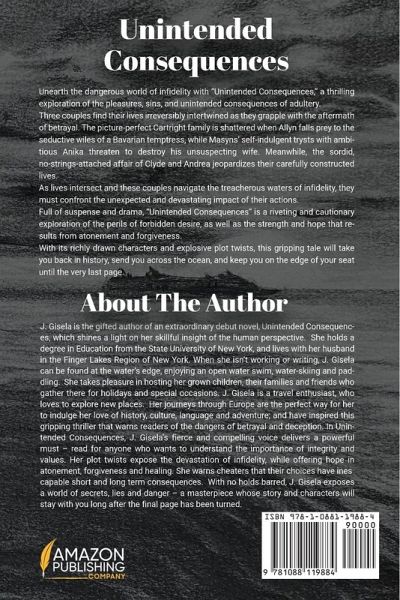 Unearth the dangerous world of infidelity with "Unintended Consequences," a thrilling exploration of the pleasures, sins, and unintended consequences of adultery. Three couples find their lives irreversibly intertwined, as they grapple with the aftermath of betrayal. The picture-perfect Cartright family is shattered when Allyn falls prey to the seductive wiles of a Bavarian temptress, while Masyns' self-indulgent trysts with ambitious Anika threaten to destroy his unsuspecting wife. Meanwhile, the sordid no-strings- attached affair of Clyde and Andrea jeopardizes their carefully constructed lives. As lives intersect and these couples navigate the treacherous waters of infidelity, they must confront the unexpected and devastating impact of their actions. Full of suspense and drama, "Unintended Consequences" is a riveting and cautionary exploration of the perils of forbidden desire, as well as the strength and hope that results from atonement and forgiveness. With its richly drawn characters and explosive plot twists, this gripping tale will take you back in history, send you across the ocean, and keep you on the edge of your seat until the very last page.