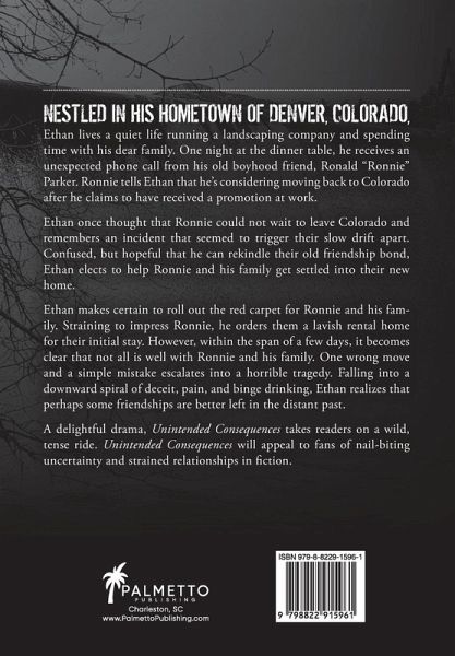 Nestled in his hometown of Denver, Colorado, Ethan lives a quiet life running a landscaping company and spending time with his dear family. One night at the dinner table, he receives an unexpected phone call from his old boyhood friend, Ronald "Ronnie" Parker. Ronnie tells Ethan that he's considering moving back to Colorado after he claims to have received a promotion at work. Ethan once thought that Ronnie could not wait to leave Colorado and remembers an incident that seemed to trigger their slow drift apart. Confused, but hopeful that he can rekindle their old friendship bond, Ethan elects to help Ronnie and his family get settled into their new home. Ethan makes certain to roll out the red carpet for Ronnie and his family. Straining to impress Ronnie, he orders them a lavish rental home for their initial stay. However, within the span of a few days, it becomes clear that not all is well with Ronnie and his family. One wrong move and a simple mistake escalates into a horrible tragedy. Falling into a downward spiral of deceit, pain, and binge drinking, Ethan realizes that perhaps some friendships are better left in the distant past. A delightful drama, Unintended Consequences takes readers on a wild, tense ride. Unintended Consequences will appeal to fans of nail-biting uncertainty and strained relationships in fiction.