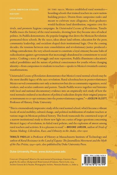 In the 1920s, Mexico established rural normales-boarding schools that trained teachers in a new nation-building project. Drawn from campesino ranks and meant to cultivate state allegiance, their graduates would facilitate land distribution, organize civic festivals, and promote hygiene campaigns. In Unintended Lessons of Revolution, Tanalís Padilla traces the history of the rural normales, showing how they became sites of radical politics. As Padilla demonstrates, the popular longings that drove the Mexican Revolution permeated these schools. By the 1930s, ideas about land reform, education for the poor, community leadership, and socialism shaped their institutional logic. Over the coming decades, the tensions between state consolidation and revolutionary justice produced a telling contradiction: the very schools meant to constitute a loyal citizenry became hubs of radicalization against a government that increasingly abandoned its commitment to social justice. Crafting a story of struggle and state repression, Padilla illuminates education's radical possibilities and the nature of political consciousness for youths whose changing identity-from campesinos, to students, to teachers-speaks to Mexico's twentieth-century transformations.