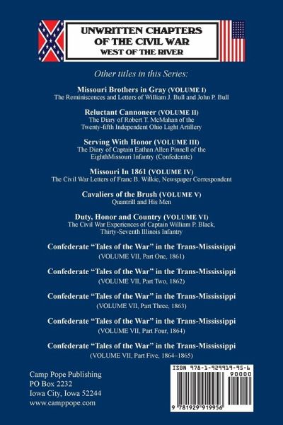 Published here for the first time since they appeared in the pages of the St. Louis Republican in the 1880s, these are the stories of the Union veterans of the Civil War in the Trans-Mississippi. Part One covers the events in Missouri that led up to Missouri reluctantly entering the Civil War, including the war preparations in St. Louis, the arrival of Nathaniel Lyon in St. Louis, and the role he played in preparing the Union side for the eventual conflict in Missouri. Also included, you will be introduced to the Missouri secession crisis and the capture of Camp Jackson on May 10, 1861, which propelled Missouri into the Civil War. The 1861 volume of this series includes extensive accounts on the Battles of Carthage (July 5, 1861), Wilson's Creek (August 10, 1861), and, to a lesser extent, the Battle of Belmont on November 7, 1861, as related by the pilot of General Grant's headquarters vessel, the Belle Memphis.