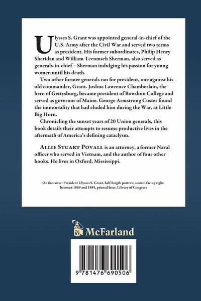 Ulysses S. Grant was appointed general-in-chief of the U.S. Army after the Civil War and served two terms as president. His former subordinates, Philip Henry Sheridan and William Tecumseh Sherman, also served as generals-in-chief--Sherman indulging his passion for young women until his death. Two other former generals ran for president, one against his old commander, Grant. Joshua Lawrence Chamberlain, the hero of Gettysburg, became president of Bowdoin College and served as governor of Maine. George Armstrong Custer found the immortality that had eluded him during the War, at Little Big Horn. Chronicling the sunset years of 20 Union generals, this book details their attempts to resume productive lives in the aftermath of America's defining cataclysm.