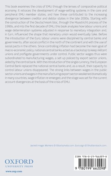 This book examines the crisis of EMU through the lenses of comparative political economy. It retraces the development of wage-setting systems in the core and peripheral EMU member states, and how these contributed to the increasing divergence between creditor and debtor states in the late 2s. Starting with the construction of the Deutschmark bloc, through the Maastricht process of the 199s, and into the first decade of EMU, this book analyzes how labour unions and wage determination systems adjusted in response to monetary integration and, in turn, influenced the shape that monetary union would eventually take. Before the introduction of the Euro, labour unions were disciplined by central banks and governments, after social conflict in the north of the continent and with the use of social pacts in the others. Since controlling inflation had become the main goal of macro-economic policy, national central banks acted as a backstop to keep militant unions and profligate governments under control. Public sector wages thus were subordinated to manufacturing wages, a set-up policed by export sector unions, aided by the central bank. With the introduction of the single currency, the European Central Bank replaced the national central banks and, as a result, their capacity to control labour unions disappeared. The strong links between wages in the public sector unions and wages in the manufacturing export sector weakened dramatically in many countries, wage inflation re-emerged, and the stage was set for the current account divergences at the basis of the crisis of EMU.