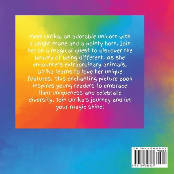 "Discover 'Unique Ulrika,' a captivating children's book where diverse animals celebrate their uniqueness through catchy rhymes. This heartwarming book encourages children to embrace their individuality and love themselves just as they are. Through whimsical verses, 'Unique Ulrika' promotes self-acceptance and the importance of accepting others. It inspires children to spread love and celebrate diversity. Join Ulrika and her animal friends on this enchanting journey, teaching your child that being unique is a beautiful gift. Share this inspiring book and empower your little ones to be confident and accepting, starting a lifelong journey of self-love.